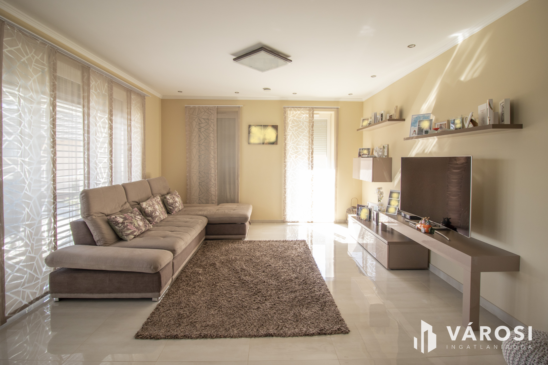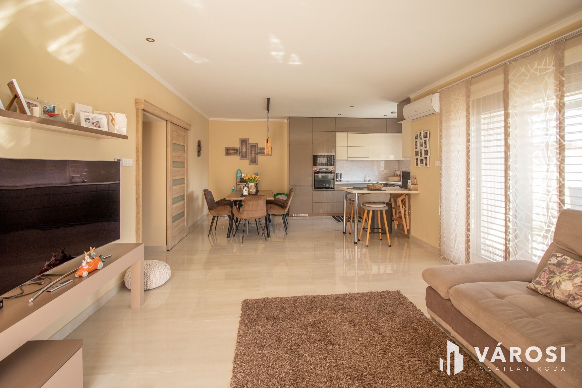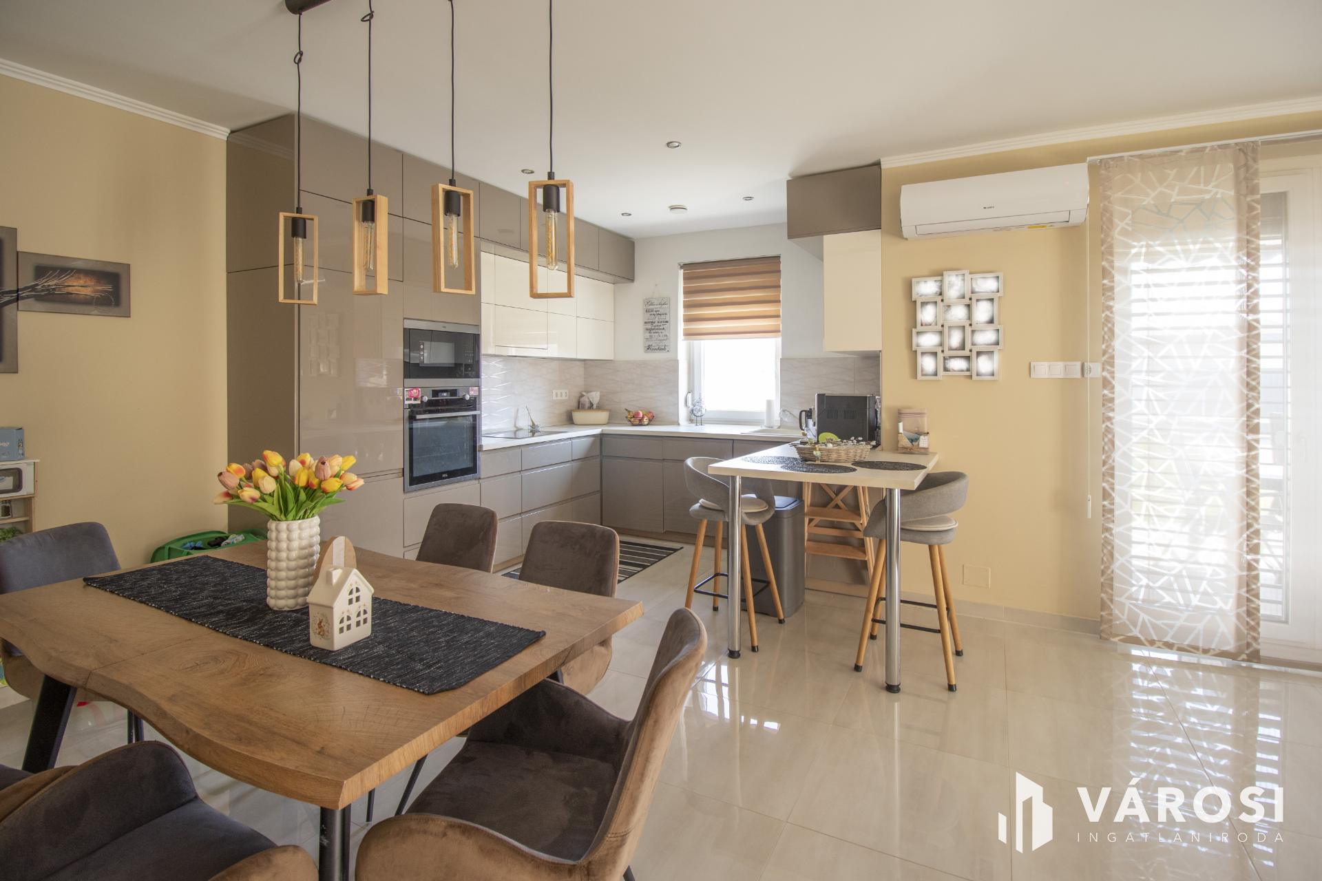 A ház három hálószobával, valamint egy tágas, amerikai konyhás nappalival rendelkezik, így kiválóan alkalmas családosok számára is.